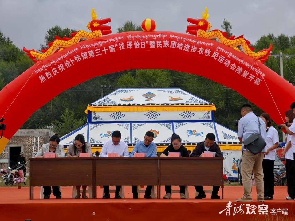 开幕式上,恰卜恰镇与龙羊峡镇、倒淌河镇、铁盖乡、廿地乡、沙珠玉乡签订乡镇睦邻友好协议,让民族团结之花在高原大地盛放。